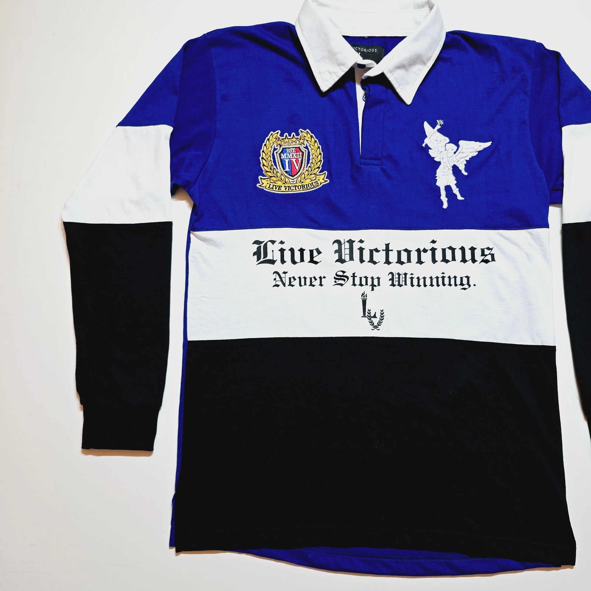 Inspired by Classic Rugby Polo's of the Past. This New Live Victorious Longsleeve Polo was designed with modern style and appeal. Lightweight Material is perfect for Spring or Year-round wear. Quality Embroidery and Comfortable Fit Guaranteed.
